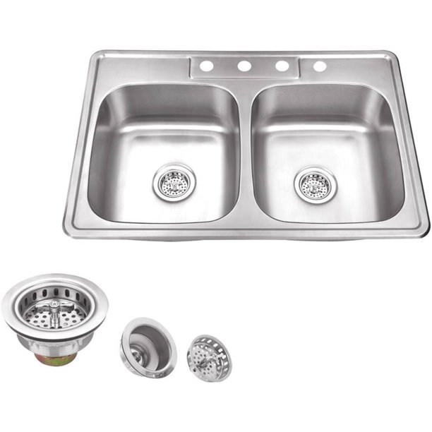 All-in-One Dual Mount Stainless Steel 33 in. 2-Hole Double Bowl Kitchen Sink Kit with Faucet The Glacier Bay All in One Dual Mount Kitchen The Glacier Bay All in One Dual Mount Kitchen Sink can be installed as either a top-mount or under-mount. The sink is made of durable 18-Gauge stainless steel with a brushed finish to provide long-lasting use, while the insulated coating on the underside ... Elkay D233193 Dayton Equal Double Bowl Drop-in Stainless Steel Sink. 4.4 out of 5 stars ... We included several types of stainless steel sinks in our reviews, ranging from compact models suitable
