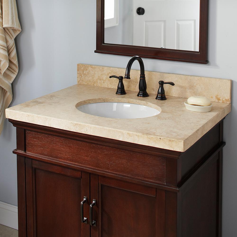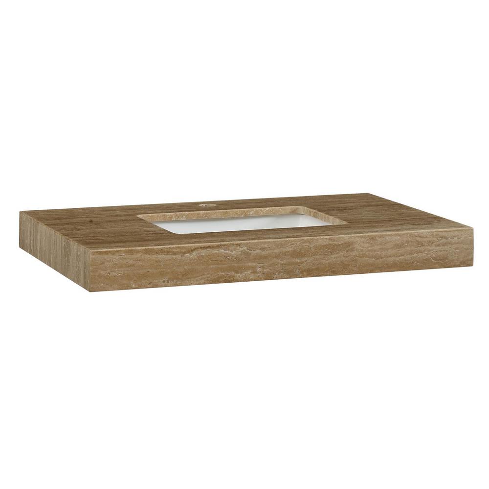 Find Travertine bathroom vanities with tops at Lowe's today. Shop bathroom vanities with tops and a variety of bathroom products online at Lowes.com. Product Overview The new stone vanity top with rectangular, integral basin from RYVYR is a demanding presence in any bathroom. Made of solid Travertine, these tops are made to withstand daily use and abuse without compromising elegance. 36-1/8 in. W x 21-5/8 in. D x 3 in. H The Cami Wood Vanity Top is designed to be matched with the Cami Bathroom Vanity and a vessel sink, while the absence of a faucet hole allows it to