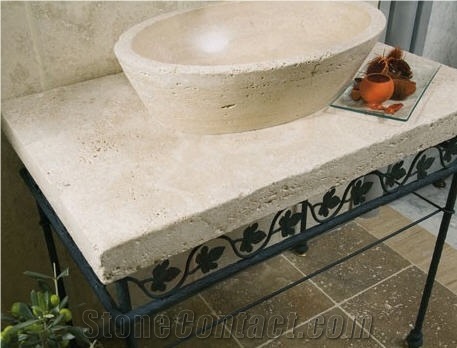suggestion: travertine vanity top with sink